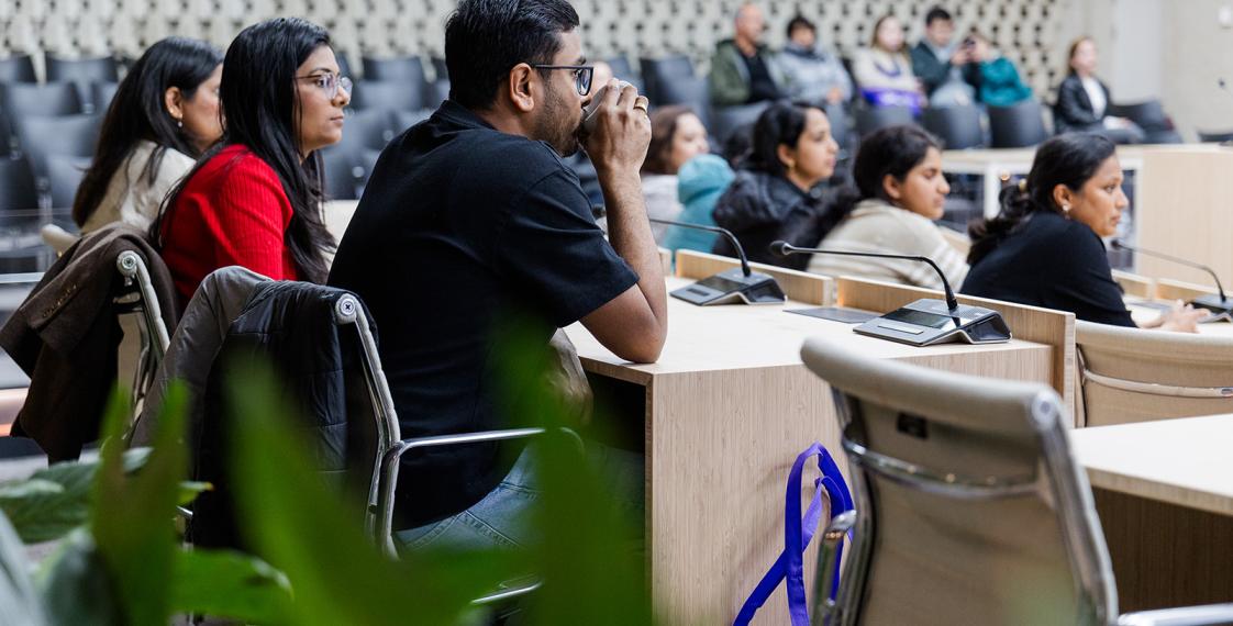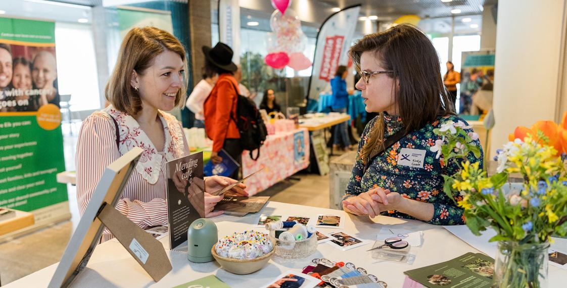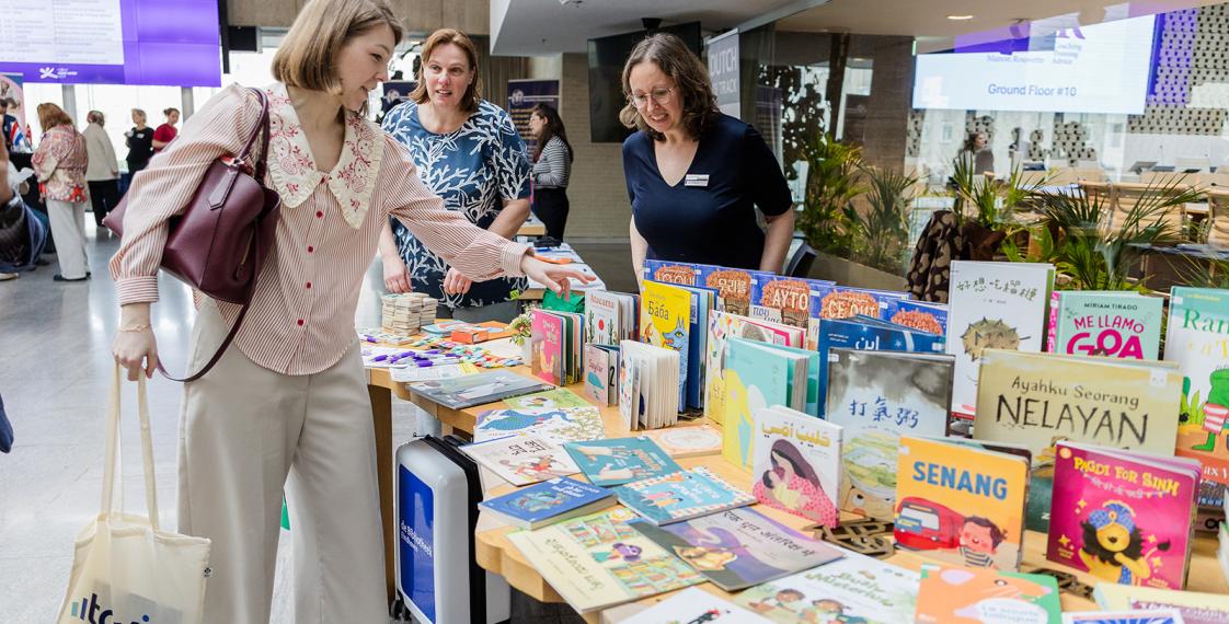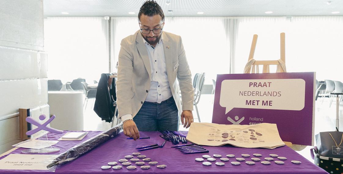 Presentations are held during the day, grouped into themes such as learning Dutch, finding a house, buying a house, filing taxes in the Netherlands, finding a job, and the Dutch healthcare system.